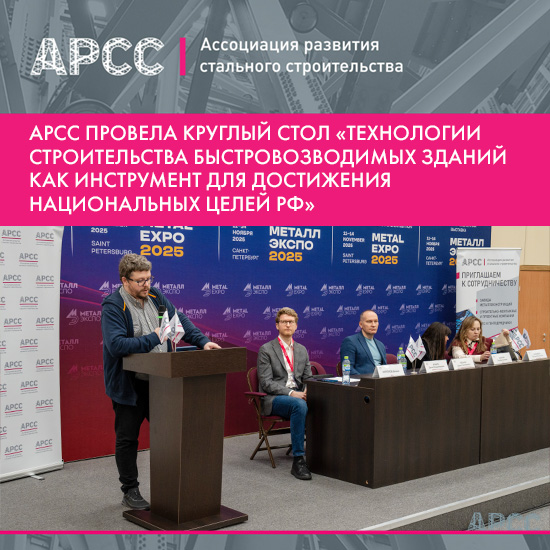В рамках Международной выставки «Металл-Экспо 2025» Ассоциация развития стального строительства (АРСС) провела круглый стол «Технологии строительства быстровозводимых зданий как инструмент для достижения национальных целей РФ».