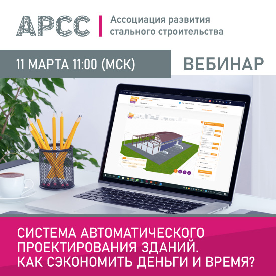11 марта 2026 г. в 11:00 (МСК) Ассоциация развития стального строительства (АРСС) проведет бесплатный вебинар на тему «Система автоматического проектирования зданий. Как сэкономить деньги и время?».