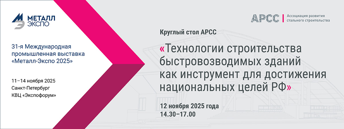 Организатор: Ассоциация развития стального строительства (АРСС). Вход на мероприятие по предварительной регистрации на сайте АРСС.