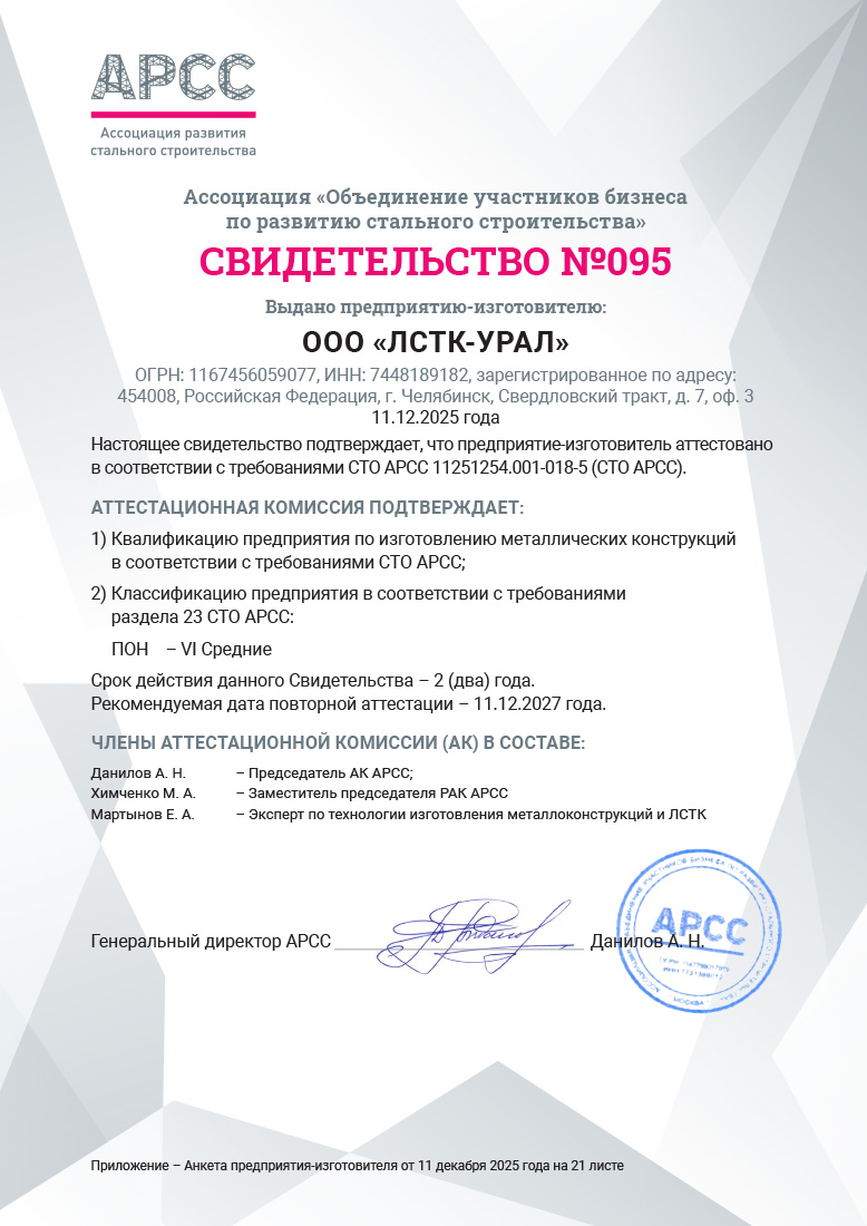 Аттестация заводов металлоконструкций по СТО АРСС создана с целью выявления заводов, производящих качественные металлоконструкции зданий и сооружений, для дальнейшего их продвижения в тендера учредителей АРСС и заказчиков отрасли.