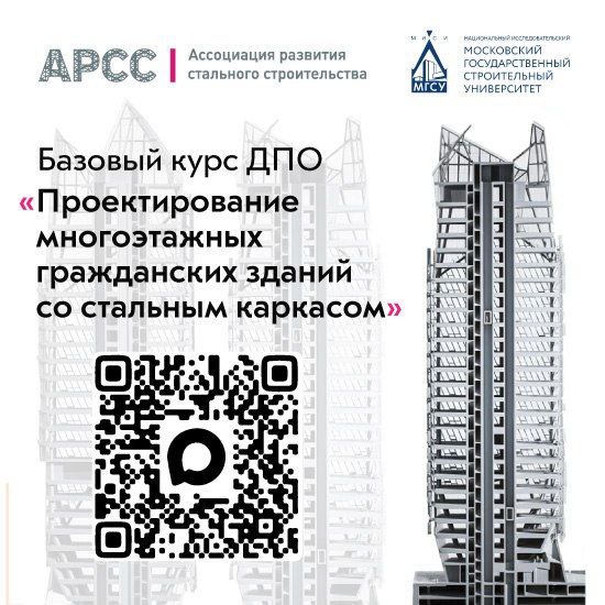 Ассоциация развития стального строительства (АРСС) и НИУ МГСУ объявили о запуске первого потока обучения по программе повышения квалификации «Проектирование многоэтажных гражданских зданий со стальным каркасом».