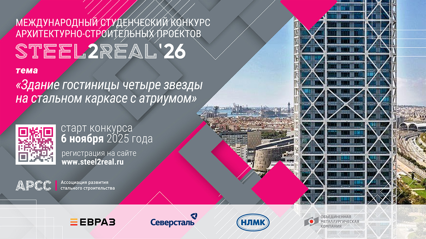 Ассоциация развития стального строительства (АРСС) объявила о начале приема заявок на XI Международный конкурс архитектурно-строительных проектов Steel2Real’26.