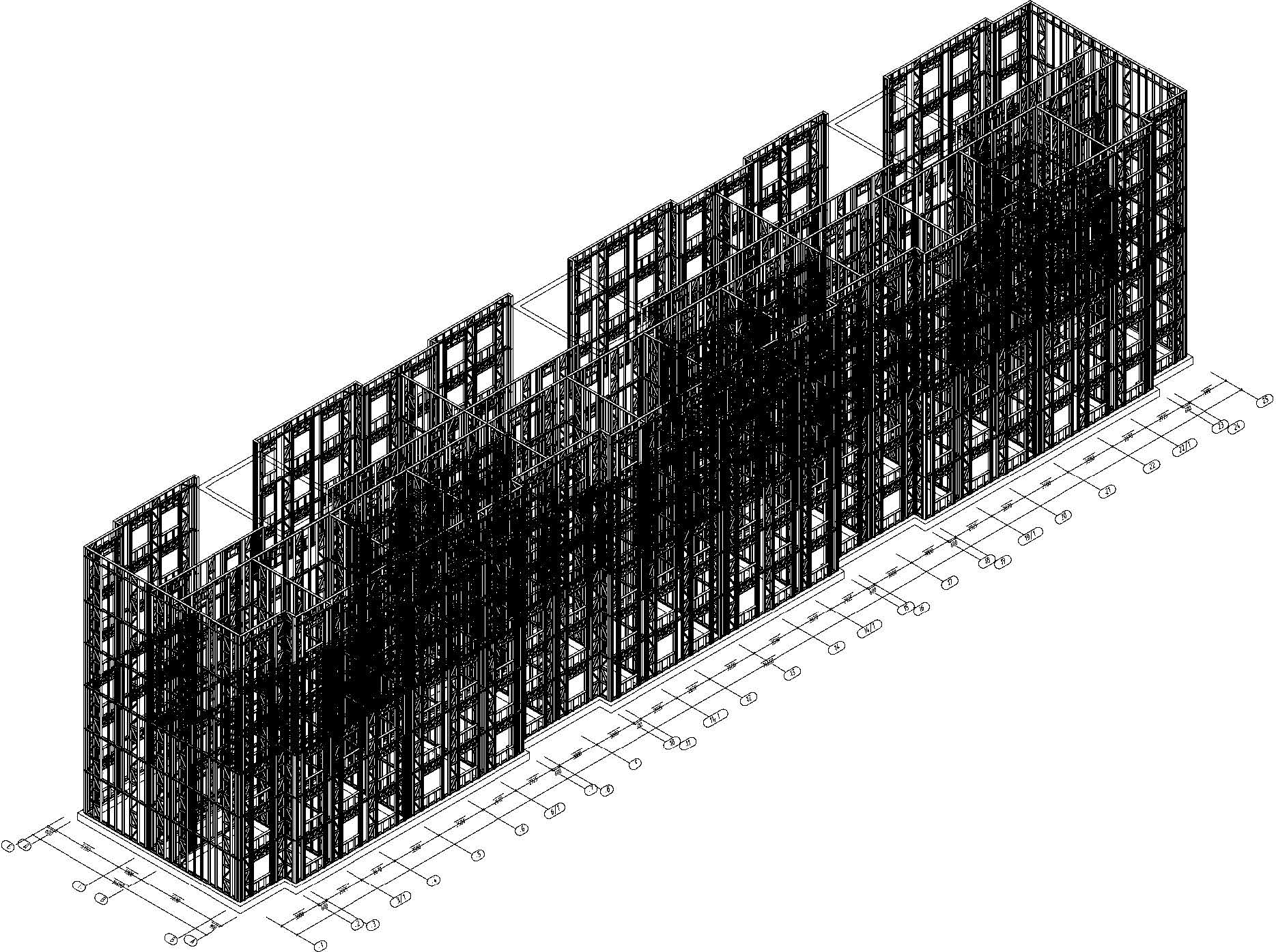 Жилой дом представляет собой 6-ти этажное здание с цокольным этажом, состоящее из трех секций, и имеет габариты в плане в осях – 76,65 х14,08 м. Каркас дома выполнен из стальных С-образных холодногнутых оцинкованных профилей и монолитных железобетонных конструкций.